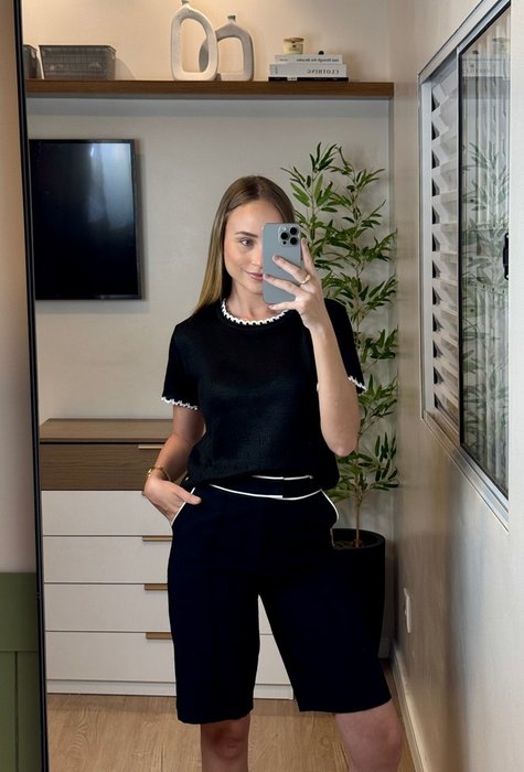 Ideal para compor looks tanto casuais quanto mais refinados, a blusa combina o conforto de uma peça versátil com o estilo atemporal da renda. A renda delicada na barra confere um acabamento único e sofisticado, tornando a blusa uma opção perfeita para eventos sociais, encontros informais ou até mesmo para um look de trabalho mais descomplicado.
