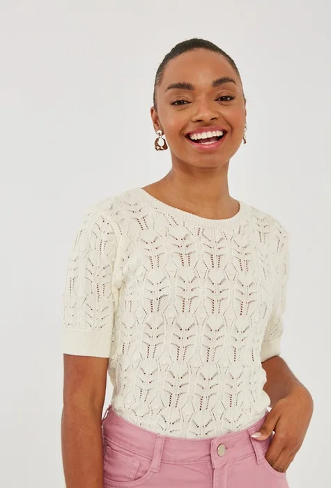 Com um design clássico e atemporal, essa blusa é ideal para diversas ocasiões, do casual ao mais sofisticado. Sua estrutura em tricot proporciona um visual refinado, destacando a simplicidade elegante que combina com diferentes tipos de acessórios e sobreposições. É uma peça que valoriza o guarda-roupa de quem preza pela versatilidade.