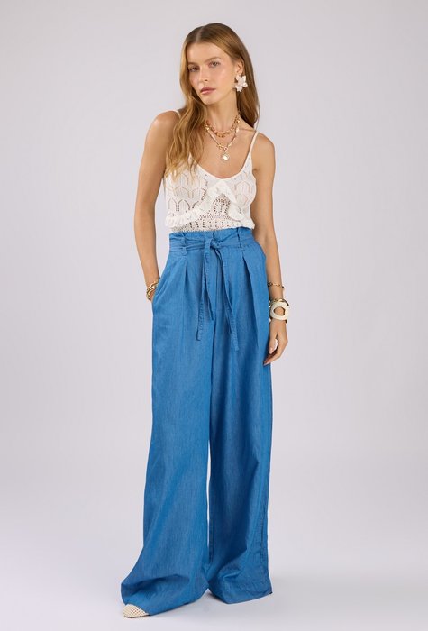 Com um design que valoriza a forma feminina, essa calça é projetada para realçar a beleza da mulher que a usa. A combinação de jeans e cinto duplo é um detalhe que adiciona um toque de elegância e estilo, enquanto a calça proporciona uma sensação de conforto e liberdade. Além disso, a calça é confeccionada com materiais de alta qualidade, garantindo durabilidade e resistência.