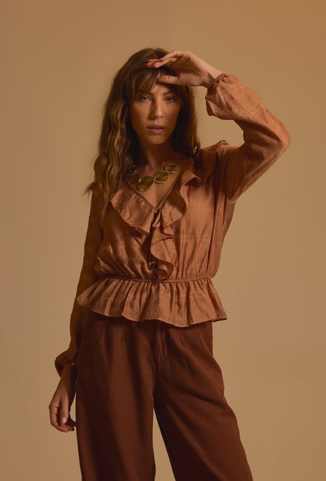 O diferencial da Camisa Pétala está no seu design elegante e atemporal. Com um formato inspirado nas formas orgânicas das pétalas de flores, ela transmite leveza e movimento, proporcionando um visual fluido e gracioso. A gola refinada e as linhas sutis criam uma estética moderna, sem perder a essência clássica e feminina.