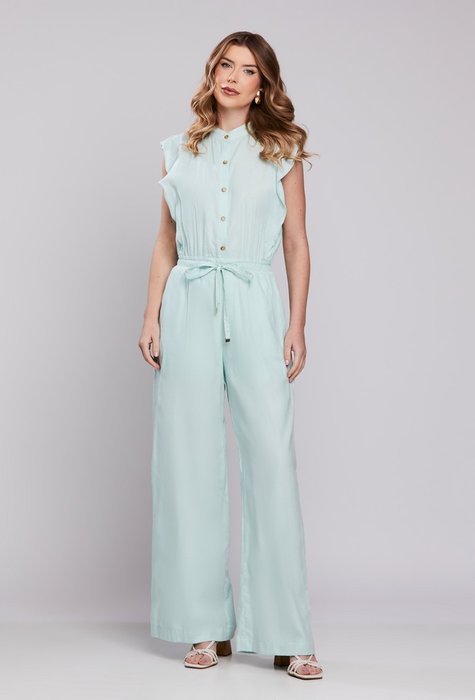 Sua modelagem é ideal para criar uma silhueta longa e fluida, com um design que une praticidade e sofisticação. O macacão é perfeito tanto para eventos formais quanto para ocasiões especiais, como jantares, festas ou até mesmo encontros mais sofisticados. O babado nos ombros é o destaque da peça, conferindo um ar de elegância e suavidade, ao mesmo tempo que equilibra o visual, sem perder a modernidade.