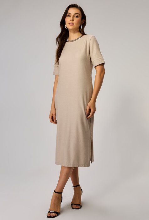 Sua malha macia e leve proporciona uma sensação agradável sobre a pele, tornando-o ideal para o uso diário em qualquer estação. O caimento do vestido é fluido e confortável, valorizando a silhueta de forma discreta e sofisticada. O modelo de manga curta confere frescor, enquanto o acabamento de alta qualidade garante durabilidade e resistência, mesmo após várias lavagens.